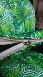 Jedna strona morsko – szara, z dinozaurami , druga strona, w królujące w ostatnim sezonie – palmy i monstery.